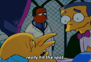 really hit the spot. Attention, all employees. Our boss and inspiration, Mr. Burns, is at de-- death's door. If you have type double-O-negative blood,
