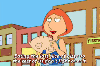 Eating the last slice of pizza so the rest of us don't fight over it.