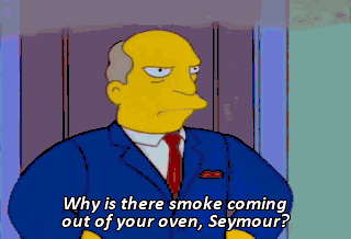 Why is there smoke coming out of your oven, Seymour? Uh-- Oh. That isn't smoke. It's steam. Steam from the steamed clams we're having. Mmm. Steamed clams.
