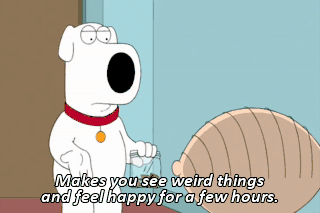 Makes you see weird things and feel happy for a few hours.