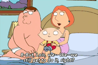 B-But, Lois, we-- We--we still get to do it, right? Honey, not in front of Stewie. Ok. Back in a minute.