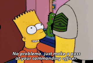 No problemo. just make a pass at your commanding officer. Done and done. And I mean done. What's going on in there?