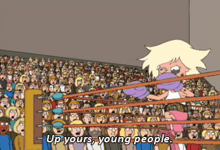 Up yours, young people. You and your rock and roll 8-track tapes!