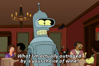 What I'm actually outraged by is your choice of wine! Really, it's the steward's fault. Excellent choice, sir.