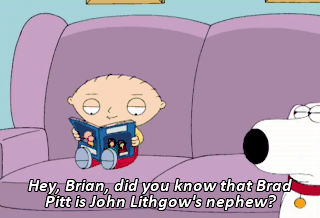 Hey, Brian, did you know that Brad Pitt is John Lithgow's nephew? He is? No, but doesn't that sound like something that could be true? Oh, my God! You're wearing a diaper!