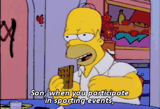 Son, when you participate in sporting events, it's not whether you win or lose, it's how drunk you get. Gotcha. Well, gotta go. Me too.