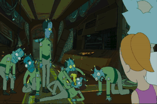 Called it, ALL: Hello, Rick. Long time no see. U nity? Rick? Grandpa? Oh, boy, Uh... these are my grandkids, Summer and Marty, Summer, Morty, this is, uh, Unity. We sort of used to, uh. ..date.