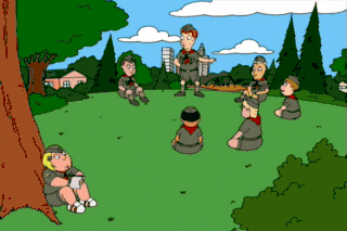 What in the name of our Christian God? You're out of the semicircle! All Scouts have to sit in the semicircle! Why? Why? Why?