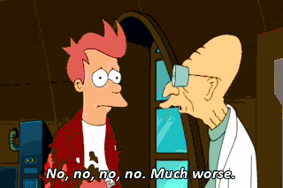 No, no, no, no. Much worse. (FRY SCREAMS)