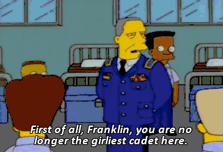 First of all, Franklin, you are no longer the girliest cadet here.