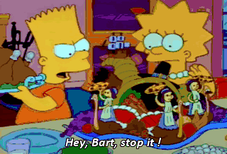 Hey, Bart, stop it ! Move it or lose it, toots ! Mom ! Now just a minute. I'm sure there's room for both. Bart, you're wreckin' it ! Let go ! I worked forever on this ! Ooh !