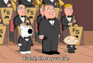 Frank, there you are. Mia Farrow? What's this I hear about you up all night with a baby and a dog? Oh, leave me alone. Get over here, young man. Damn it all.