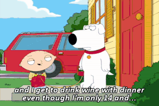 and I get to drink wine with dinner even though I'm only 14 and...