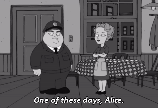 One of these days, Alice. One of these days... Yeah, yeah. I know, Ralph. Right to the moon. Oh.