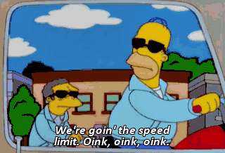 We're goin' the speed limit. Oink, oink, oink.