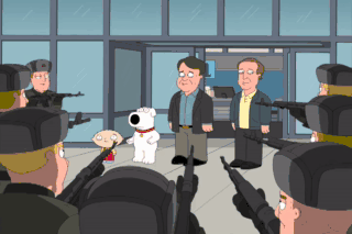 You are under arrest. Time to lose this costume. (LAUGHING) 'Cause we're in Russia!