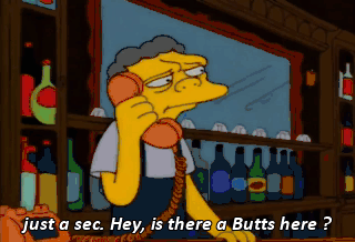 just a sec. Hey, is there a Butts here ? Seymour Butts ? Hey, everybody, I want a Seymour Butts ! Ah, wait a minute.