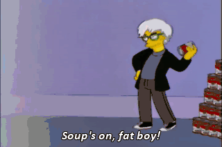 Soup's on, fat boy! Ooh! Ow! Hey! No!