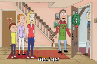 Hey, hey! Merry Christmas, son. Uh, hi.