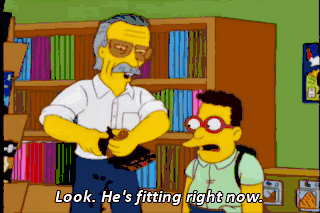 Look. He's fitting right now. Stan Lee came back? Stan Lee never left. And I'm starting to think that his mind is no longer in mint condition. You broke my Batmobile! Broke, or made it better?