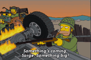 Something's coming, Sarge. Something big! Stay strong, men. The United States is due to win a war sometime. Oh, good Lord! It a Swingline! (GASPS) (SCREAMS) Medic!
