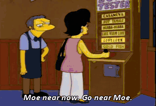 What? "Go near Moe." I'd say that's a pretty strong endorsement.
