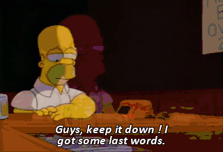 Guys, keep it down ! I got some last words. I never told you this before, but sometimes when I'm at work, I think of you and smile. So often I think that-- Oh, words won't do it !