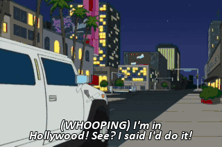(WHOOPING) I'm in Hollywood! See? I said I'd do it!