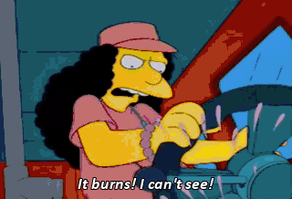It burns! I can't see! Stay calm, kids. I need you to be my eyes. Okay. Which way should i turn?