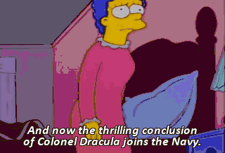 And now the thrilling conclusion of Colonel Dracula joins the Navy. Uh, Colonel? Hmm? Lisa, what in the heck are you doing? Oh. It's for my junior Achievers Club.