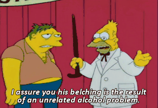 I assure you his belching is the result of an unrelated alcohol problem.