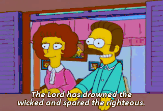 The Lord has drowned the wicked and spared the righteous. Isn't that Homer Simpson? Looks like heaven's easier to get into than Arizona State.