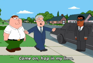 Come on, hop in my limo. Wow, a limo! Shotgun!