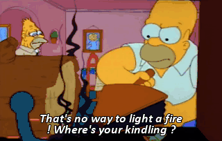 That's no way to light a fire ! Where's your kindling ? This thing's gonna be roaring anytime now. Even a caveman could start a fire.