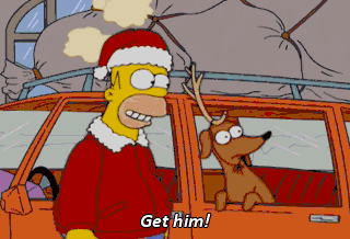 Get him! Give back our presents, stupid man! Your behavior, it's like not sanctioned by any governing body. You're like wild. Shouldn't you all be singing carols or something? (GROANING)