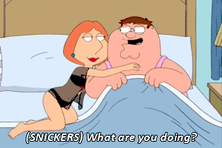 (SNICKERS) What are you doing? I'm fooling around. Come on, sweetie. Let's have some fun. Lois, I'm gay. Wait a minute, you mean we can't have sex?