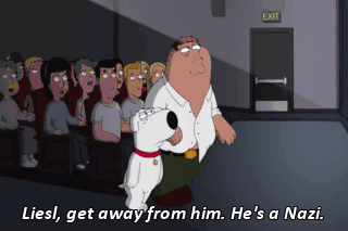 Liesl, get away from him. He's a Nazi. I know Jews is bad, but thems is worse. WOMAN: Sit down! MAN: Move.