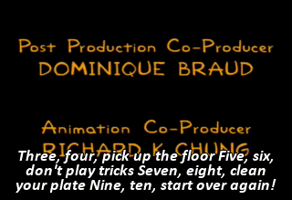 Three, four, pick up the floor Five, six, don't play tricks Seven, eight, clean your plate Nine, ten, start over again!