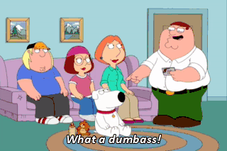 What a dumbass! (ALL LAUGHING) What? What? What'd I miss? Are we laughing at Brian? (LAUGHS) Brian, you suck. What the devil is in here?