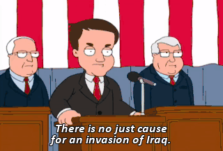 But what we're all forgetting is anyone who doesn't want to go to war is gay.