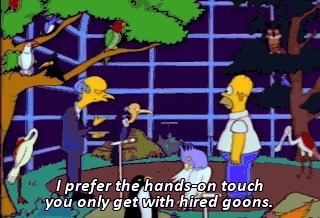 I prefer the hands-on touch you only get with hired goons. Hired goons? This is the largest TV in the free world. ¡Ay, un gato malodoro!