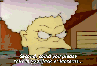 Second, could you please take in your jack-o'-lanterns... from past Halloweens? Mmm, no.