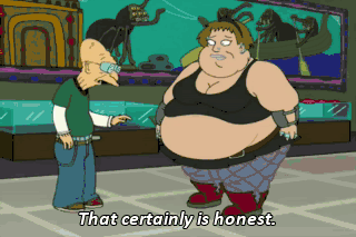That certainly is honest. It's better for us to both just be ourselves. You, wrinkled as a prune-- You, fat as the queen of sea cows. I love you!