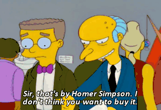 Sir, that's by Homer Simpson. I don't think you want to buy it. Smithers, years ago I blew the chance to buy Picasso's Guernica for a song. Luckily that song was "White Christmas,"
