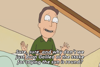 Sure, sure, and why don't we just burn Galileo at the stake for saying the sun is round? Science isn't always easy, Morty.