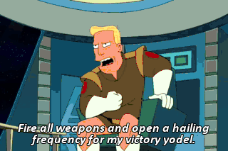 Fire all weapons and open a hailing frequency for my victory yodel. (ALL SCREAMING)
