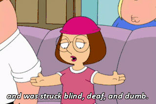 and was struck blind, deaf, and dumb. Hey, Meg. they got a Happy Days spoof in here... but they call it Crappy Days. All right, you know what? If you're not gonna laugh, then I'm not gonna keep you company.