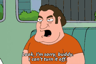 Look, I'm sorry, buddy. I can't turn it off. Well, then I'm gonna break every bone in your body. " wish I had no bones! Done. That ought to show you!
