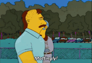 Mattingly! I told you to trim those sideburns. Go home! You're off the team! For good! Fine. I still like him better than Steinbrenner. All right, you ragtag bunch of misfits.