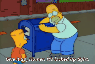 - Give it up, Homer. It's locked up tight. - Locked, eh ? Well, I just might have a little surprise up my sleeve... for old Mr. Lock.
